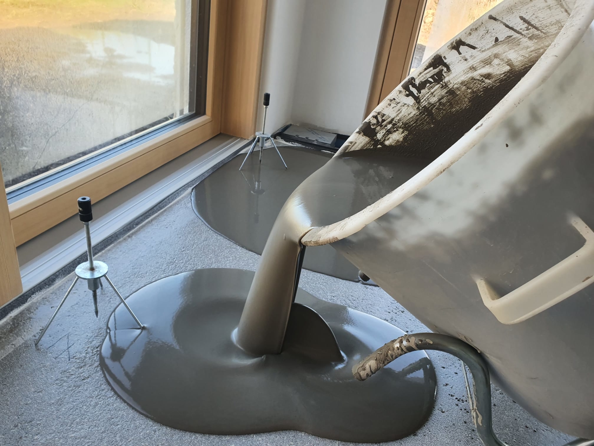 vlhkosti. Na ni rychlý kontaktní můstek Ardex P4 a mohlo se začít stěrkovat. Jako samonivelační stěrka byl použit Chemos Standart 30, který splňuje potřebné pevnosti pod dřevěnou krytinu.