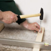 Vytvořte si rošt (ze sušených latí nebo hranolků) kolmo k požadovanému směru pokládky podlahových prken. Rošt srovnejte do roviny, vypodložte ho a ukotvěte tak, aby byl dostatečně hutný a kompaktní.